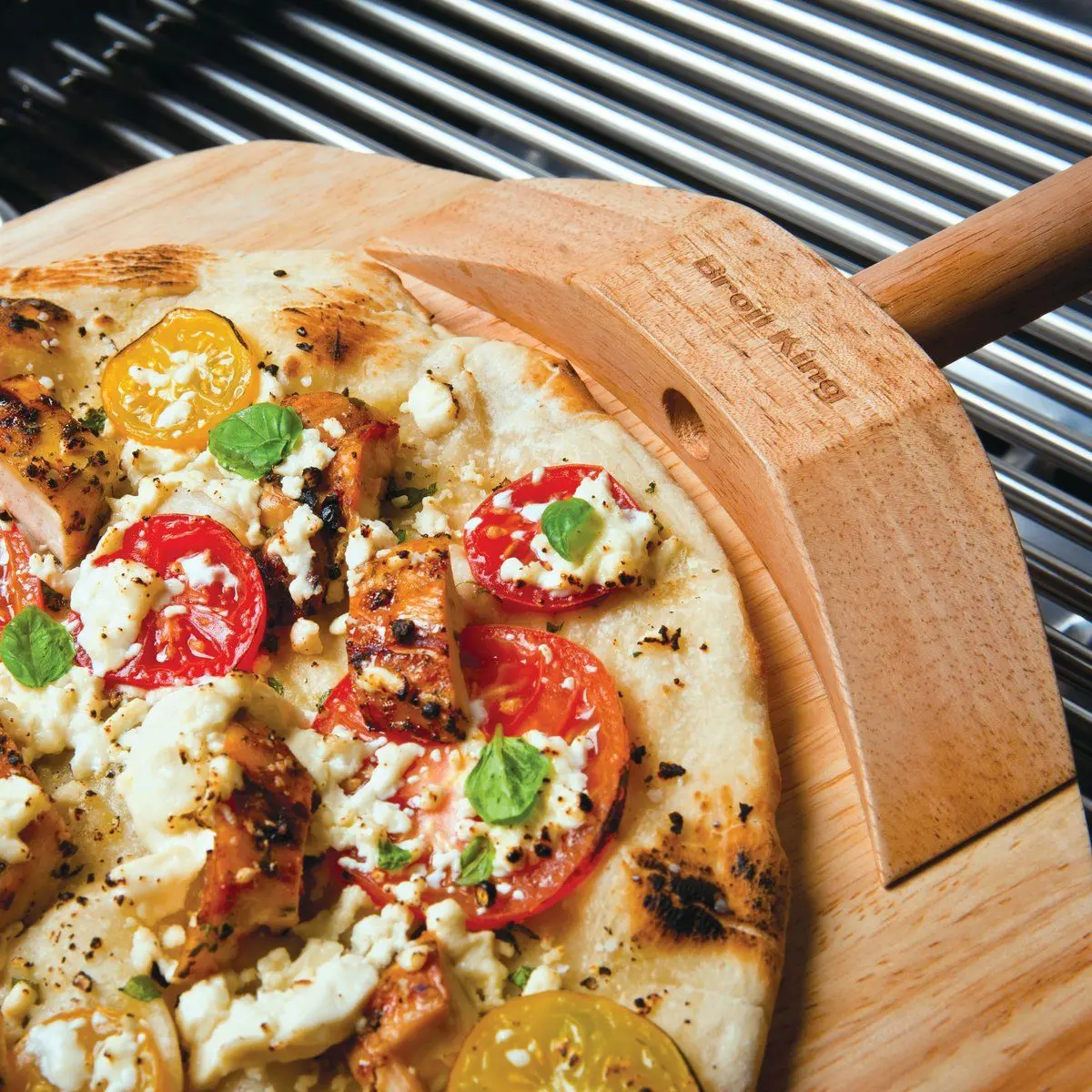 Камень пиццы Broil King® Imperial ™ имеет высококачественную нержавеющую сталь толщиной 1,2 мм., стальную подставку с негабаритными ручками из нержавеющей стали толщиной 10 мм. Набор включает эластичный камень пиццы 33,0 см, способный выдерживать быстрые изменения температуры, высококачественная нержавеющая подставка и деревянной лопаткой для пиццы. Подставка также предназначена для того, чтобы пицца не соскользнула с камня.