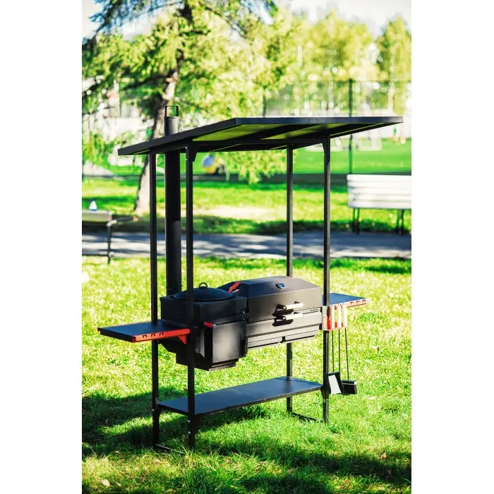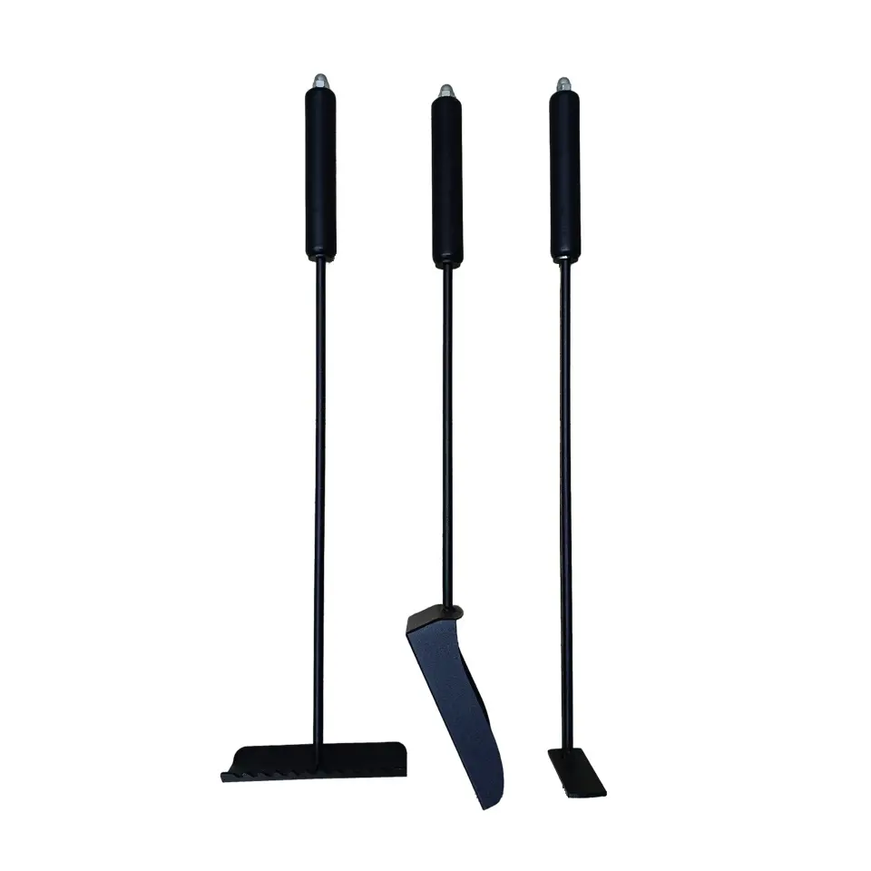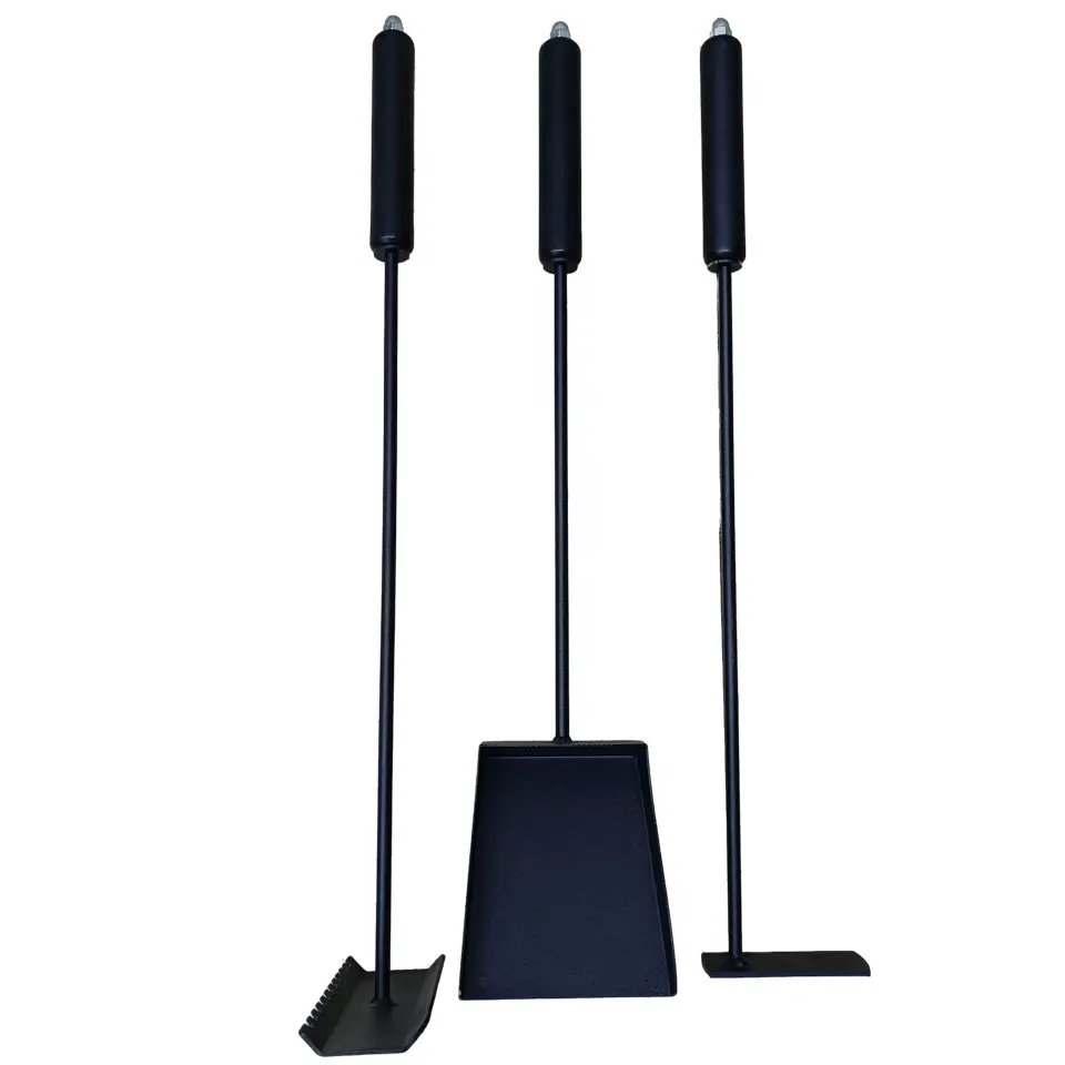 Каждый инструмент имеет деревянную ручку и покрыт жаропрочной краской. Совок и кочерга - незаменимый помощник при использовании мангала, а скребок поможет перемещать уголь и дрова из печи в мангал.