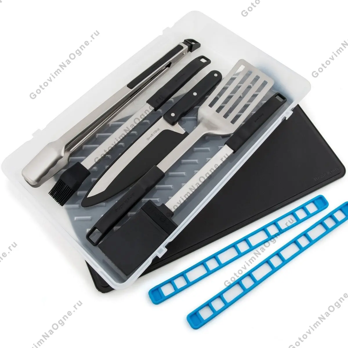 Возьмите кулинарный опыт с собой! Набор инструментов Porta-Chef™ содержит в себе все необходимое. В набор входит: лопатка, щипцы, щетка для гриля, силиконовая кисть и прочный нож с лезвием длиной 20 см. Набор упакован в пищевой контейнер. Крышка набора изготовлена из прочного пластика и может быть использована в качестве доски для разделки.