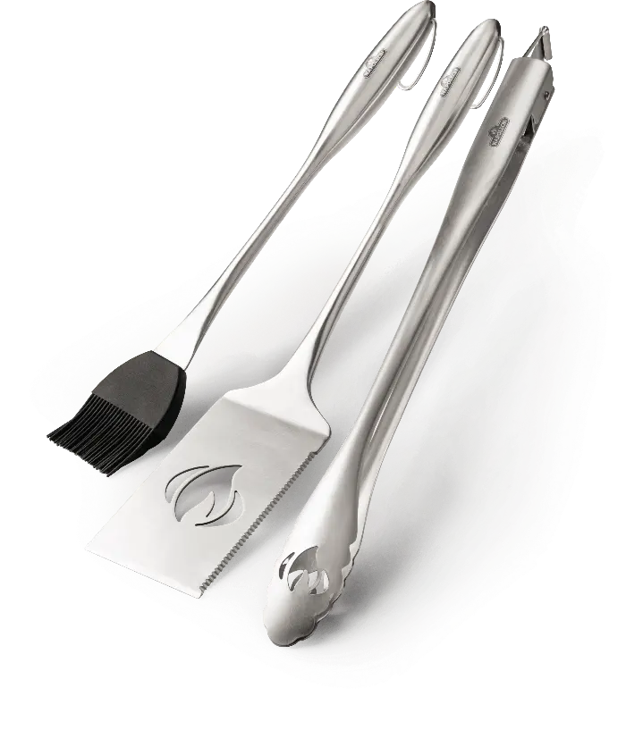 Набор инструментов из нержавеющей стали PRO Napoleon 3 Piece идеален для приготовления барбекю. В комплекте лопатка с удлиненным шпателем, щипцы с затвором и силиконовая кисть.