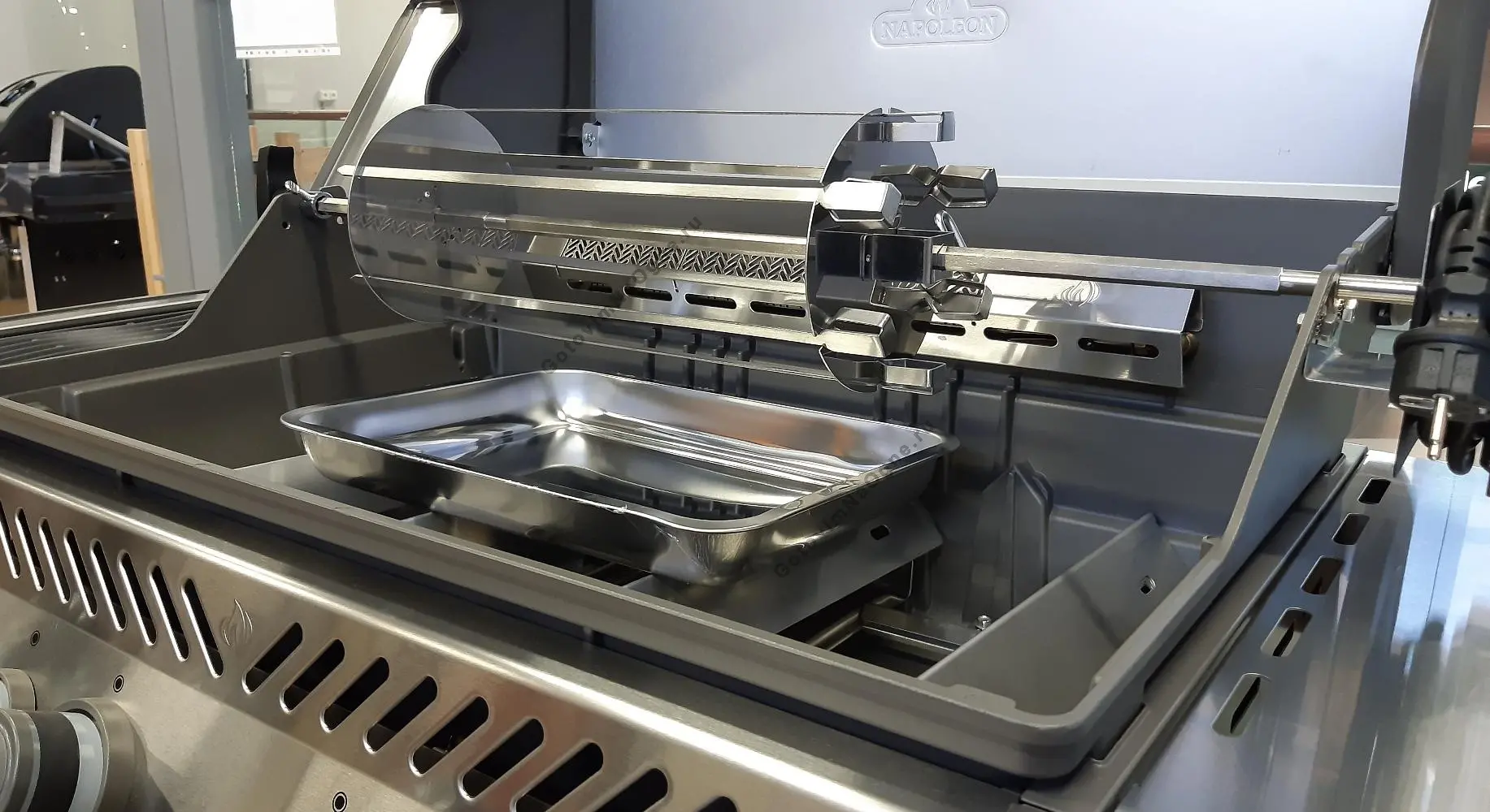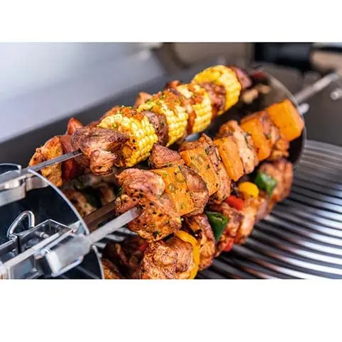 Данная насадка используется на вращающемся вертеле для приготовления и равномерной прожарки таких блюд, как шашлык, кебаб, сосиски и многого другого. Вы можете установить её на любую модель вертелов от компании NAPOLEON. Все детали и крепления выполнены из качественной и долговечной нержавеющей стали, устройство очень легко устанавливается на вертел, разбирается и чистится.