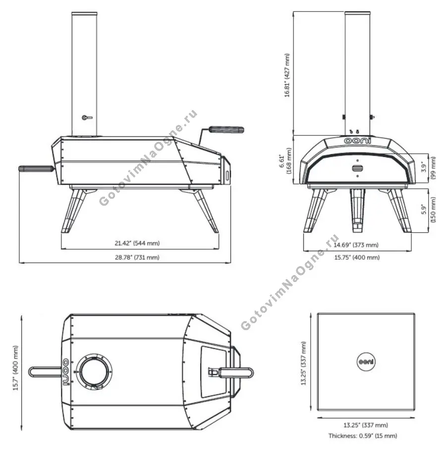 - Удобство транспортировки. Печь весит всего 12 кг., что вкупе с возможностью сложить ножки и трубу делает транспортировку необычайно легкой. Возьмите печь с собой в поход или на отдых и наслаждайтесь идеальной пиццей где угодно.