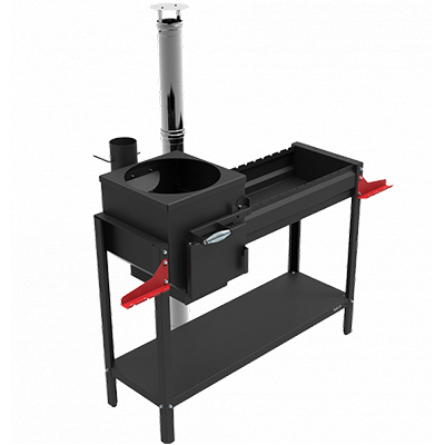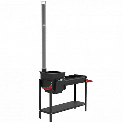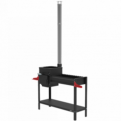 Печь-мангал, держатель аксессуаров, дымоход с шибером для печи под казан, чугунный колосник для печи, полка для дров.