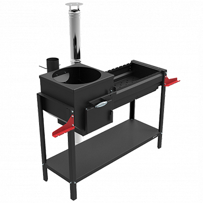 Печь-мангал "Искандер 400 Стандарт Эйр NEW" под казан 12 л., 3 мм., с дымоходом из нерж. стали. Печь-мангал серии "ИСКАНДЕР" - инновационный и уникальный барбекю комплекс! Это мангал + печь под казан, а если добавить к нему крышку-гриль, то угольный гриль и смокер в одном устройстве! Используется с казаном 12 л.