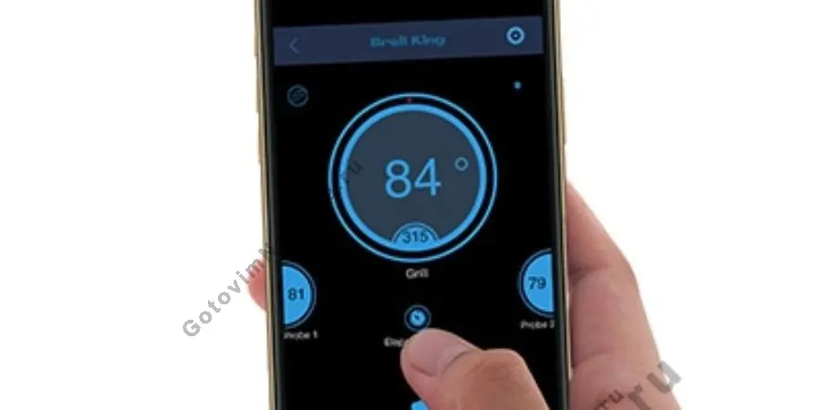 Приложение полностью совместимо с Android и iOS, работает по сети Wi-Fi или Bluetooth - всё для Вашего удобства. С его помощью Вы сможете управлять своим грилем из любой точки мира. Изменить или проверить температуру, поставить таймер, настроить отправку уведомлений о достижении желаемой температуры, менять преднастройки - всё это делается за пару кликов. Приложение полностью бесплатно.
