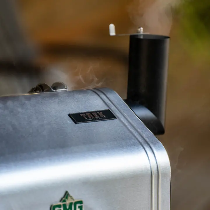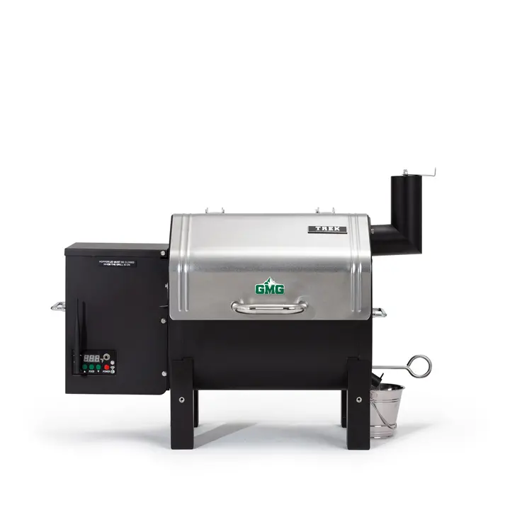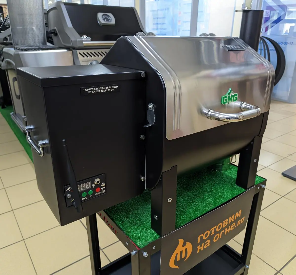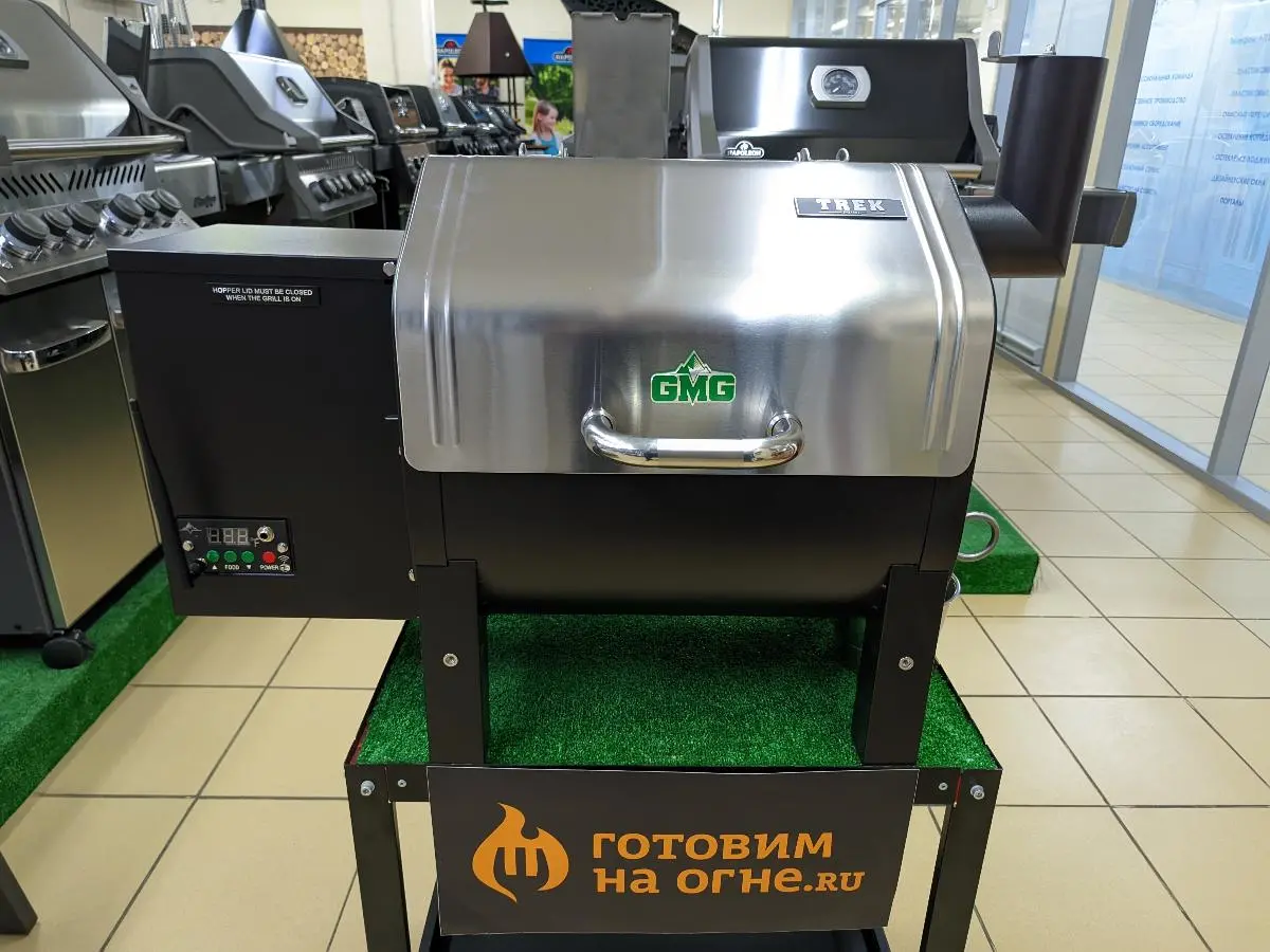 Пеллетный гриль GMG Trek. Компактный переносной гриль, который идеально подходит для семейных путешествий, поездок на дачу и природу. Кроме обычной розетки GMG Trek может быть подключен к прикуривателю в авто или к напрямую к автомобильному аккумулятору. Гриль легко размещается на балконе, лоджии, террасе, беседке и в машине. Регулировка температуры с шагом в 5°С.и умное управление: запустили и занимаетесь своими делами, а за копчением и запеканием следите дистанционно. Средний расход пеллет 350 грамм/час.