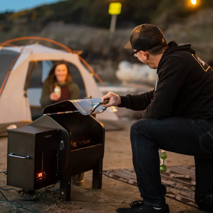 Пеллетный гриль GMG Trek. Компактный переносной гриль, который идеально подходит для семейных путешествий, поездок на дачу и природу. Кроме обычной розетки GMG Trek может быть подключен к прикуривателю в авто или к напрямую к автомобильному аккумулятору. Гриль легко размещается на балконе, лоджии, террасе, беседке и в машине.