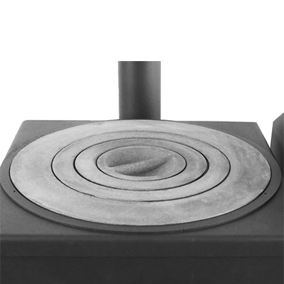 Плита имеет 4 чугунных кольца разных диаметров что позволяет использовать печь под казан как кухонную плиту на свежем воздухе.С плитой можно готовить в посуде разных диаметров.