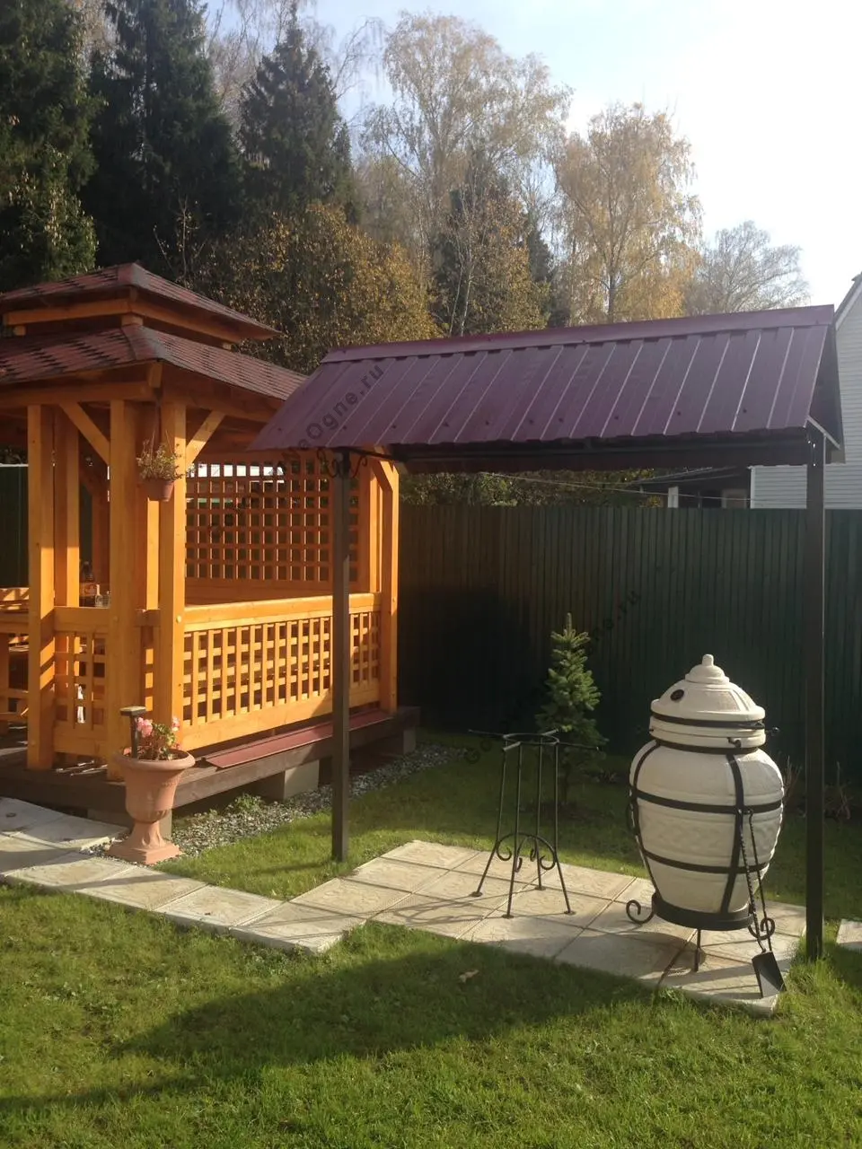 Стойка служит для размещения крышки, а также для подвешивания шампуров, кочерги, совка и других аксессуаров.