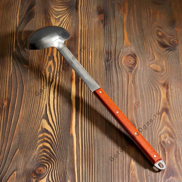 Этот половник обычно используется для приготовления блюд в казанах объемом от 18 литров.