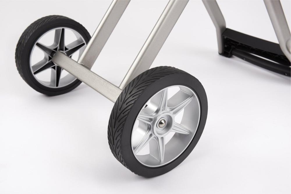 - Инновационный дизайн складной тележки типа «ножницы» обеспечивают мобильность и компактное хранение в вертикальном положении.