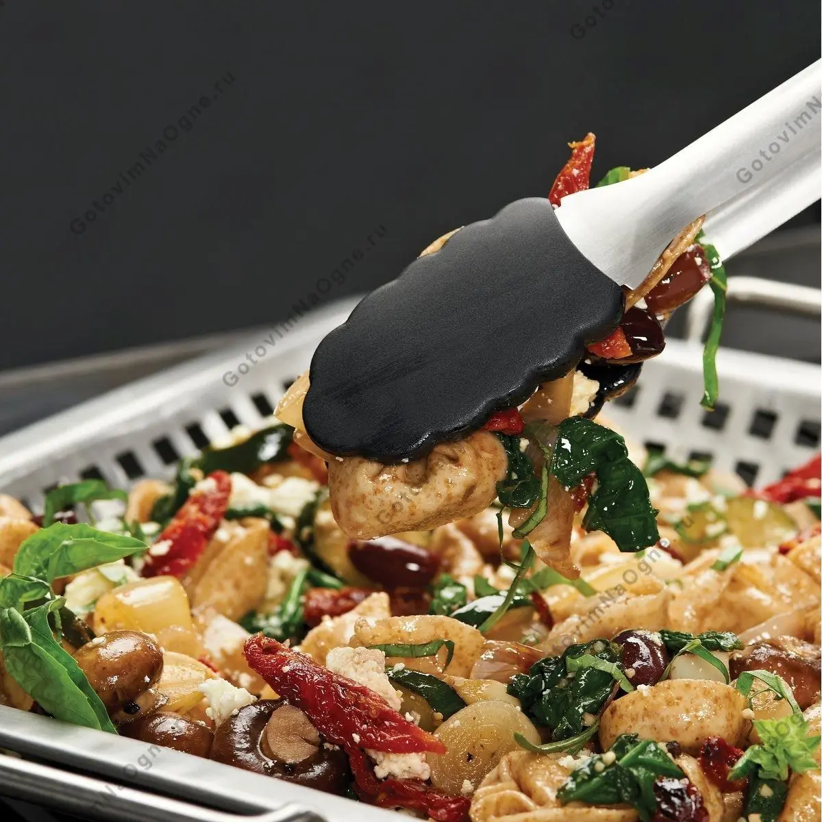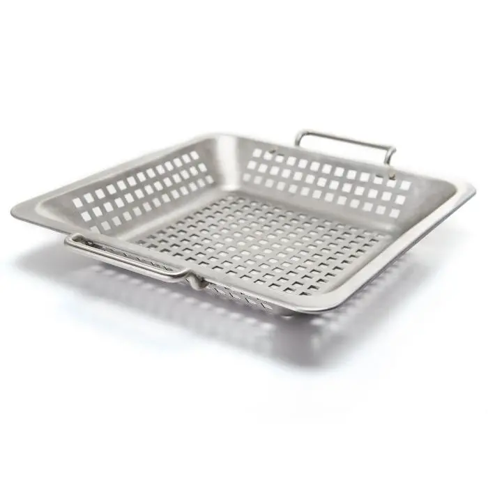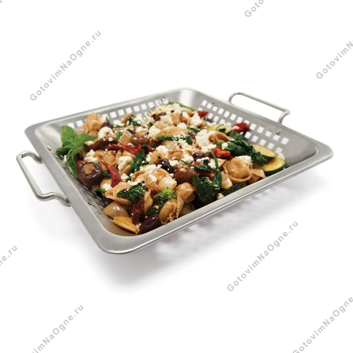 Вок для гриля из нержавеющей стали с отверстиями и ручками из нержавеющей стали. Улучшенный дизайн повышает функциональность и прочность вока, а также облегчает процесс его чистки.