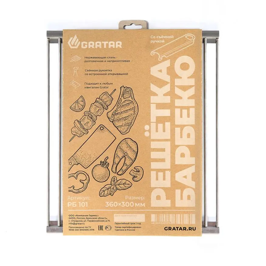 Решетка барбекю из нержавеющей стали со съёмной ручкой GRATAR идеально подходит для приготовления продуктов на мангале.