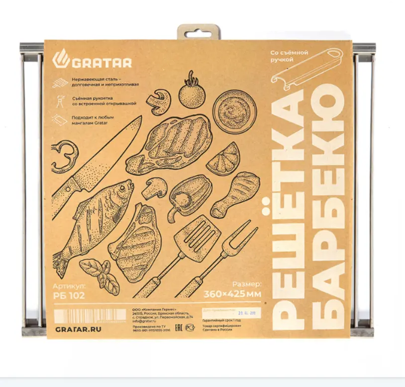 Решетка барбекю из нержавеющей стали со съёмной ручкой GRATAR идеально подходит для приготовления продуктов на мангале.