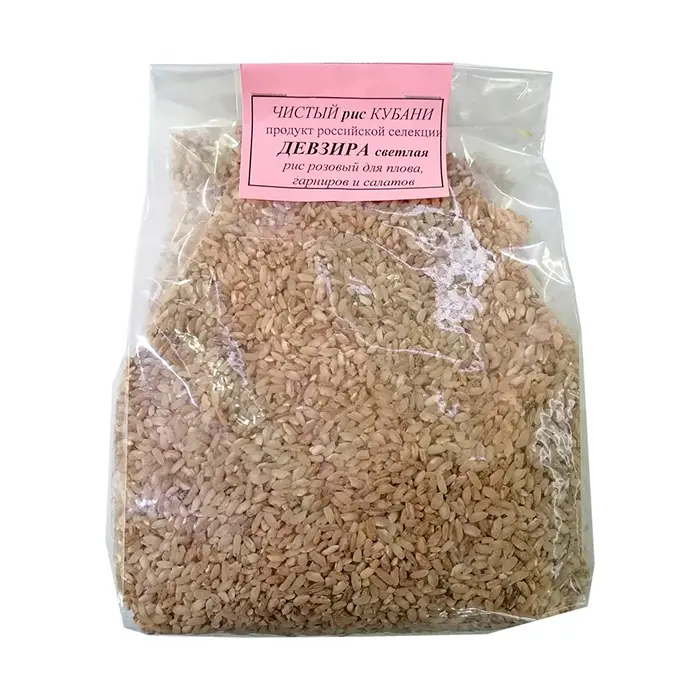 Рис предназначен для приготовления узбекского и классического плова, рассыпчатых гарниров, рагу, салатов с овощными ингредиентами, морепродуктами и т.д. Отличается от традиционного белого риса повышенной питательной ценностью, нежно-розовым оттенком, сохранением целостности ядер при варке, превосходным вкусом и ароматом. Рис абсолютно натуральный, не содержит ГМО, выращен по безгербицидной технологии. Продукт сертифицирован.