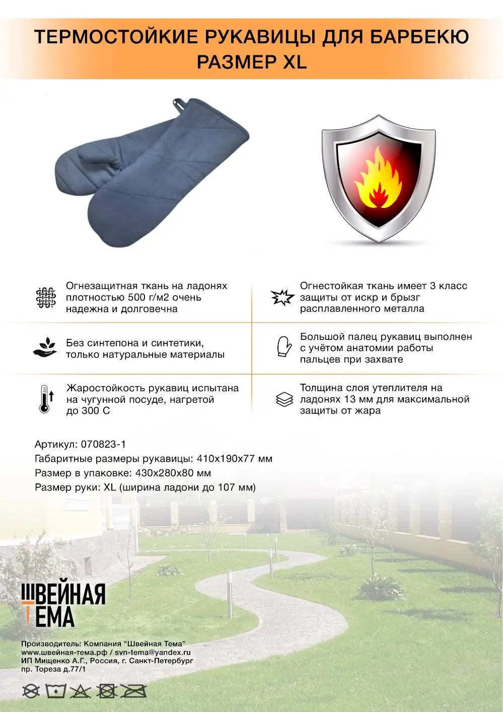 - Жаростойкость рукавиц испытана на чугунной посуде, нагретой до 300 °С.