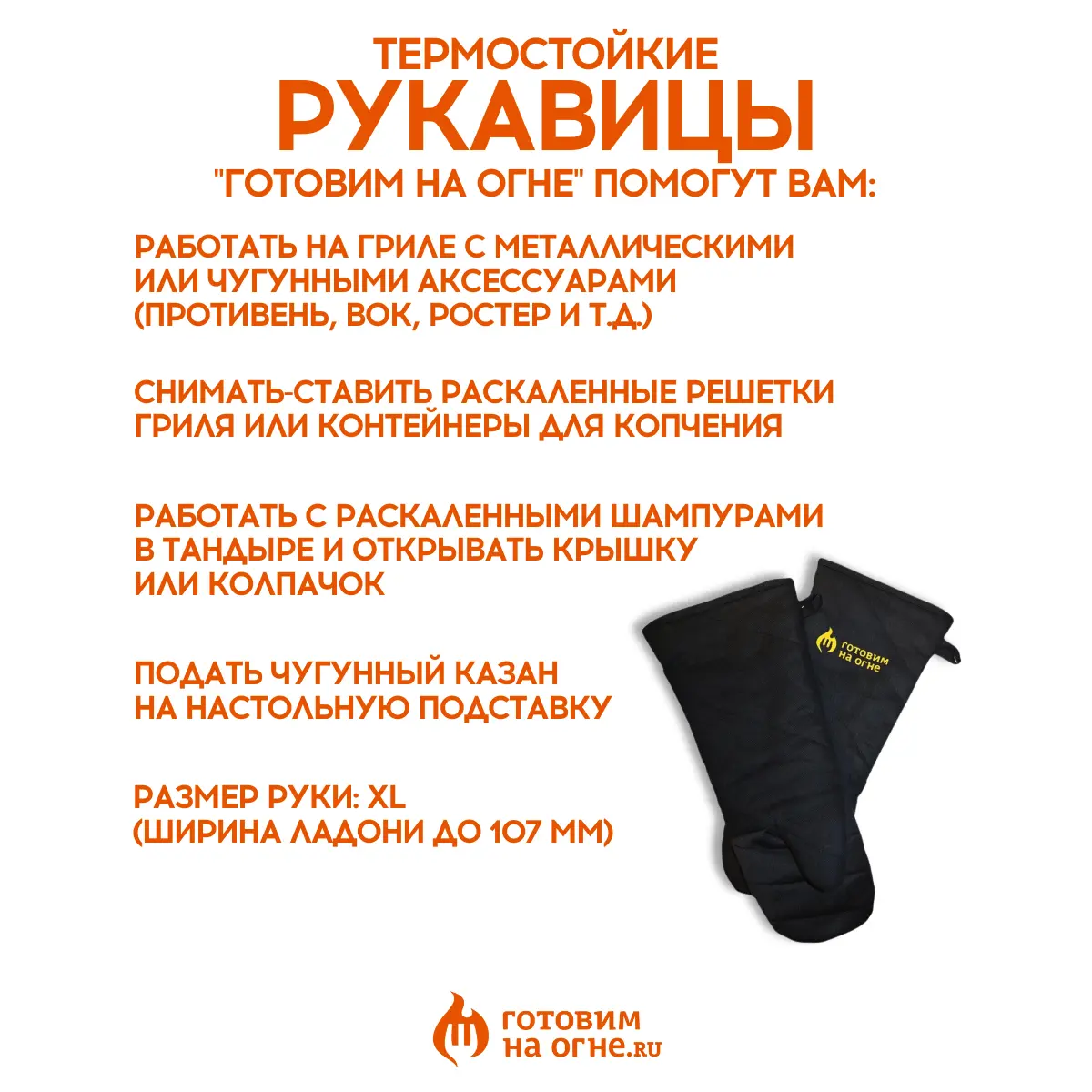 Жаростойкие рукавицы "Готовим на огне" помогут Вам: