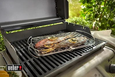 Пружинящая конструкция сетки из гибкой проволоки аккуратно удерживает продукты разной формы и толщины, например, нежное рыбное филе, кесадилью, бекон или фрукты.