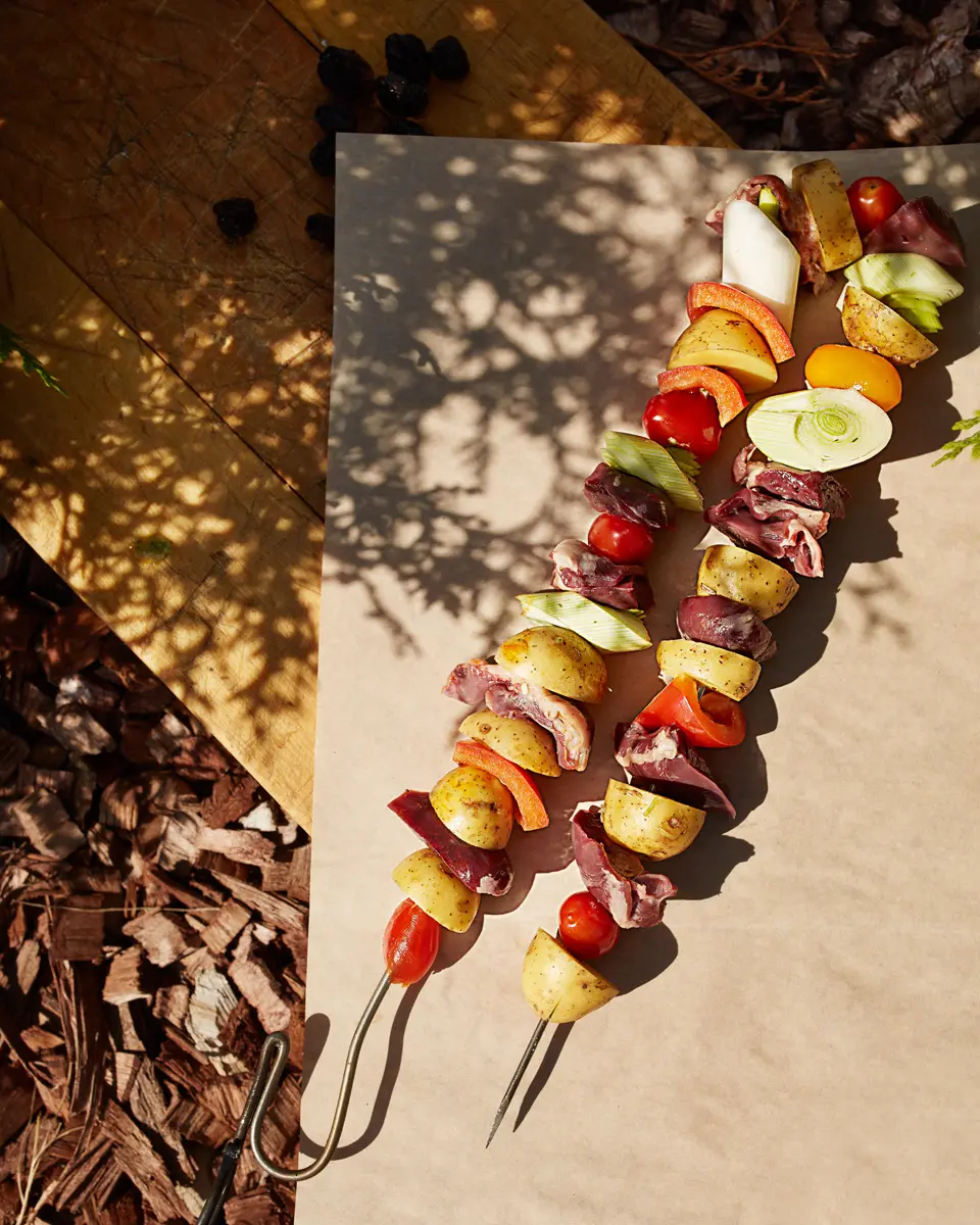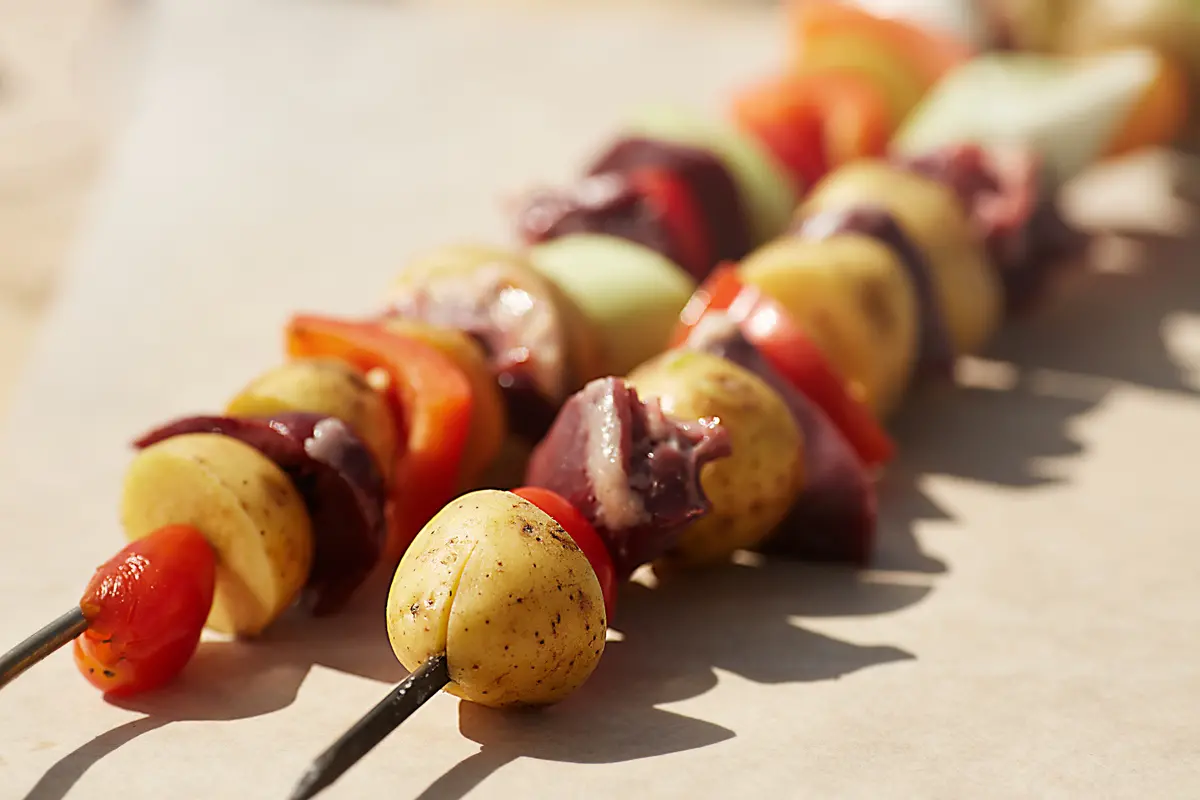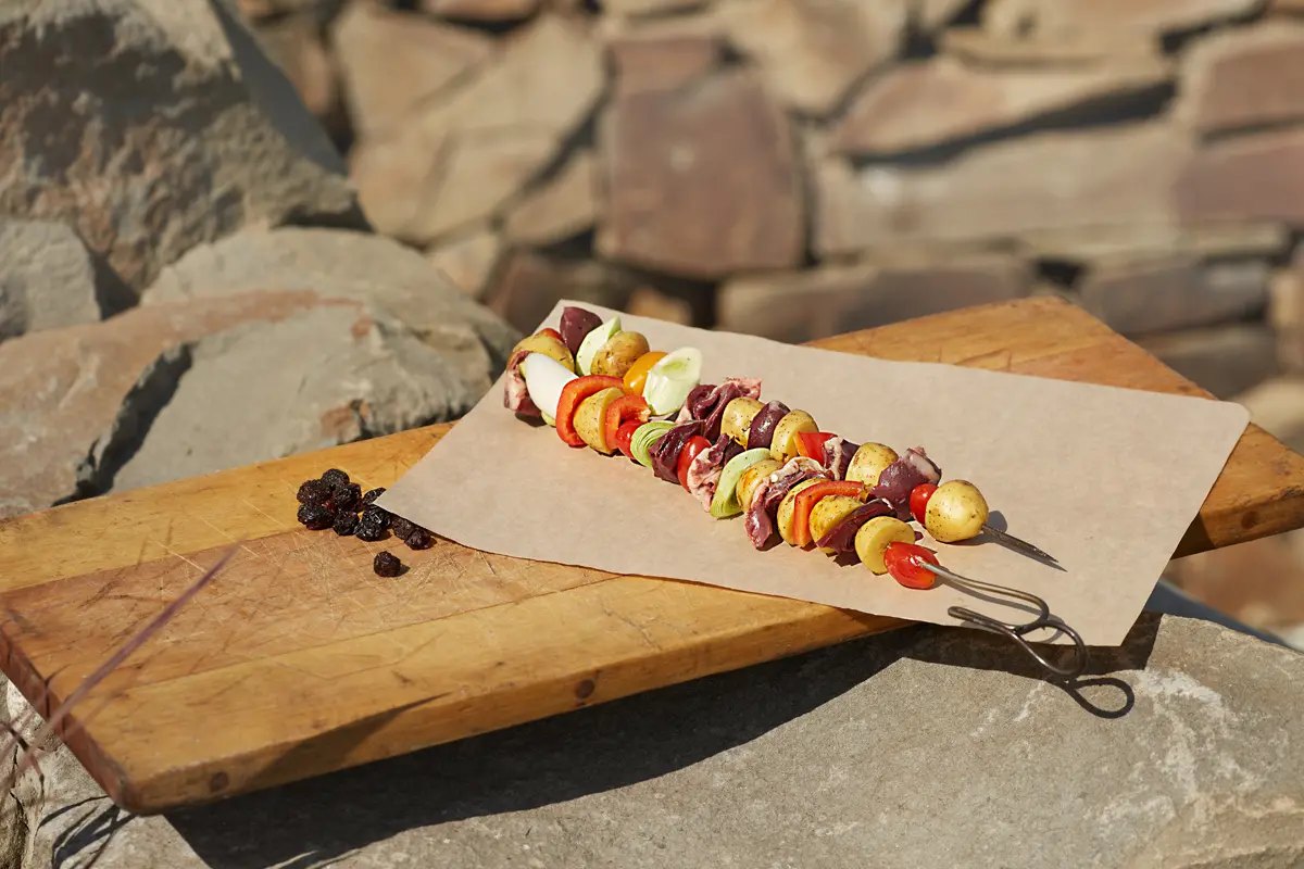 Шампур двойной идеально подходит для небольших, нежных продуктов, которые могут сваливаться с обычного шампура, таких как: грибы, креветки, сало, овощи.