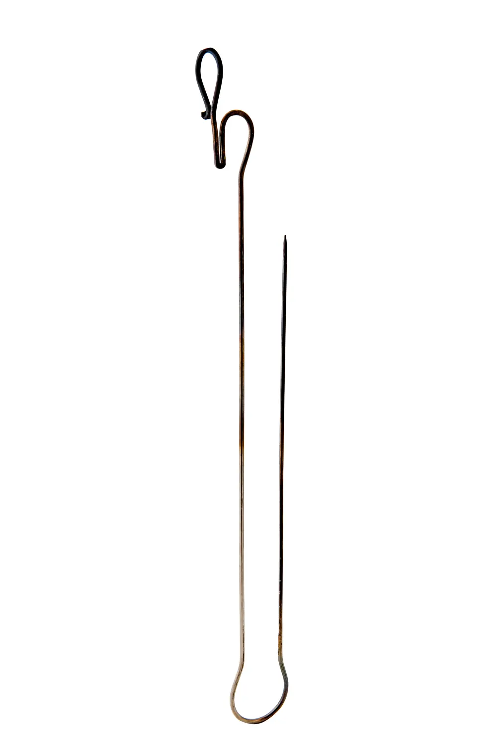 Шампур двойной, кованый, для тандыра из нерж. стали идеально подходит для небольших, нежных продуктов, которые могут сваливаться с обычного шампура, таких как: грибы, креветки, сало, овощи. Рабочая длина шампура 66 см.