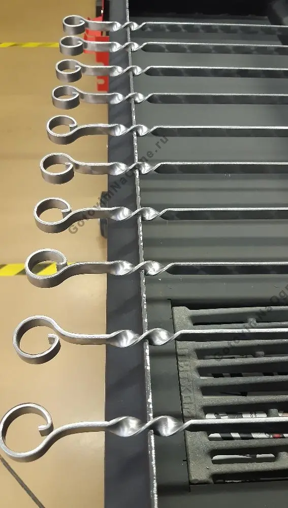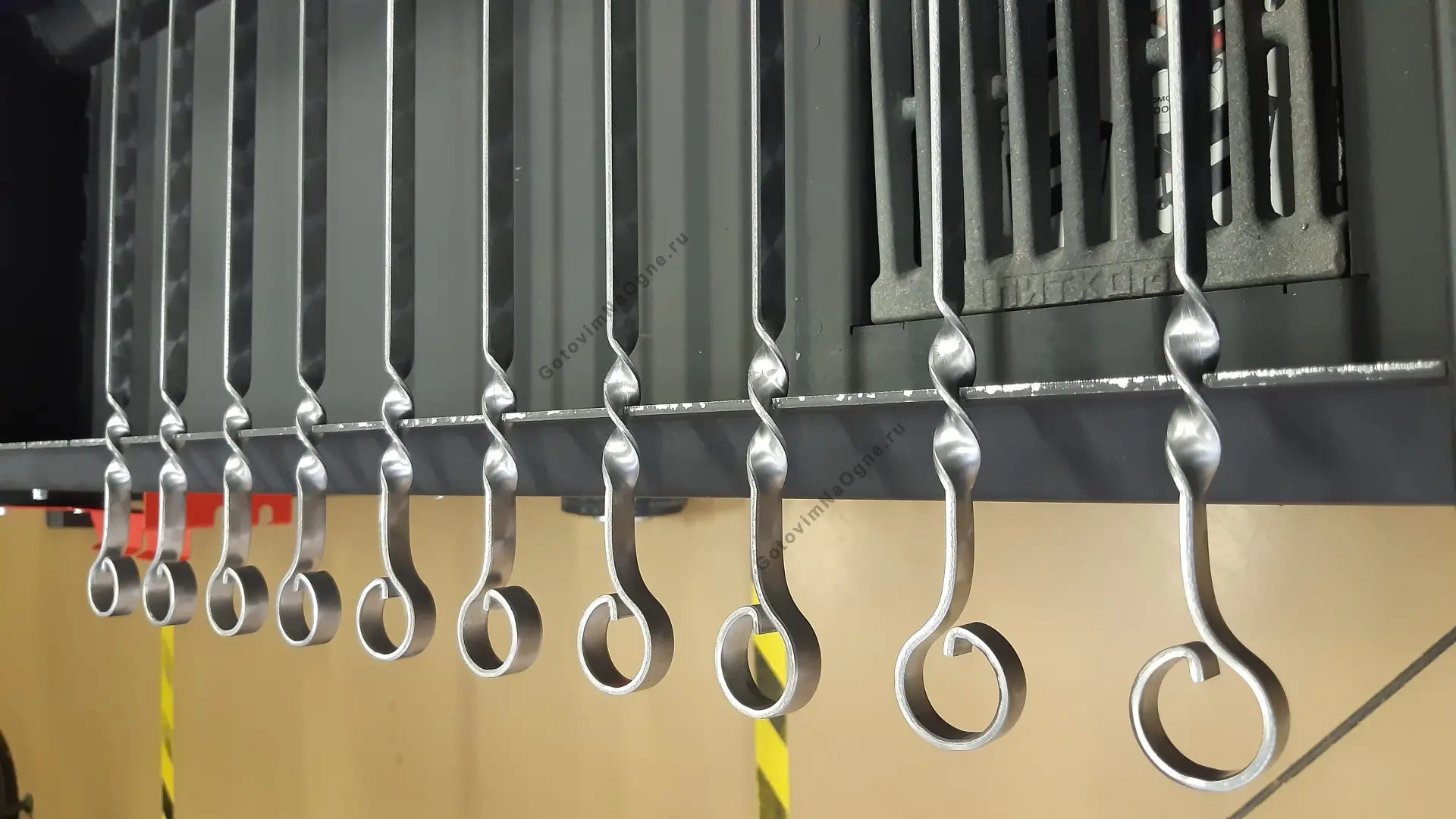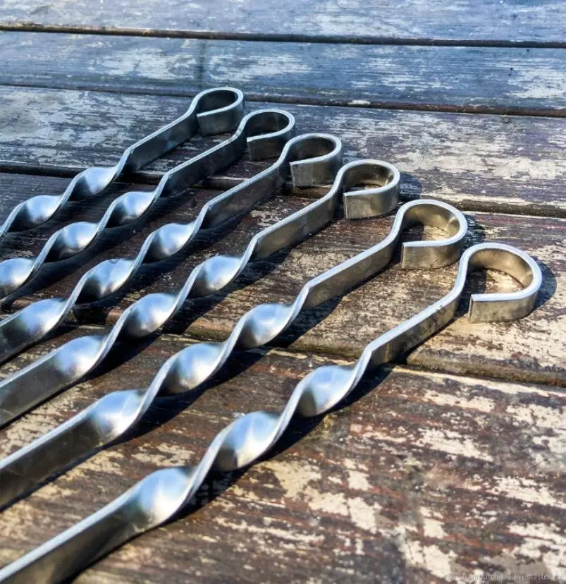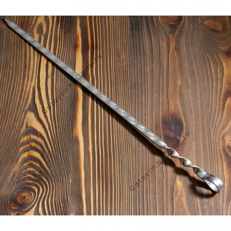 Шампуры из толстой нерж. стали, рабочая длина 400 мм., ширина лезвия 11 мм., толщина 3 мм. шлифованная нержавейка с эффектом "морозко", вес 0,1 кг.