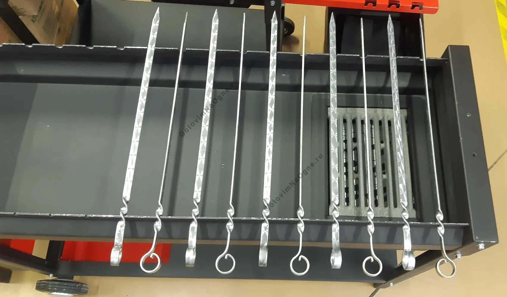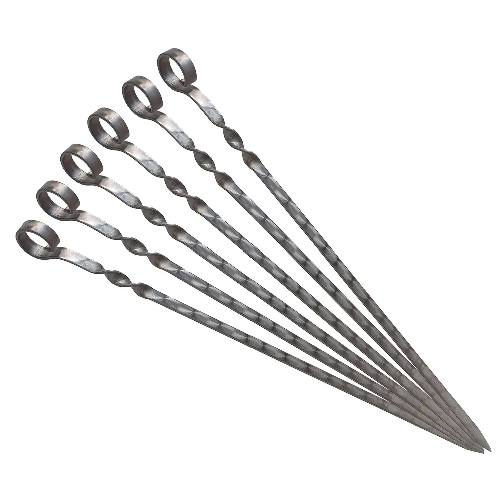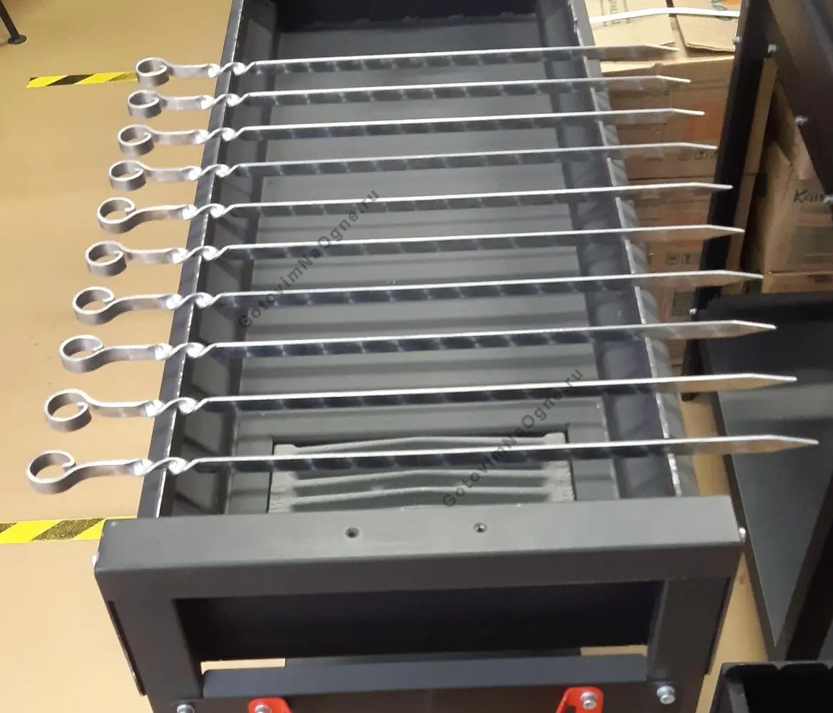 Шампуры из толстой нерж. стали, рабочая длина 400 мм., ширина лезвия 11 мм., толщина 3 мм. шлифованная нержавейка с эффектом "морозко", вес 0,1 кг.