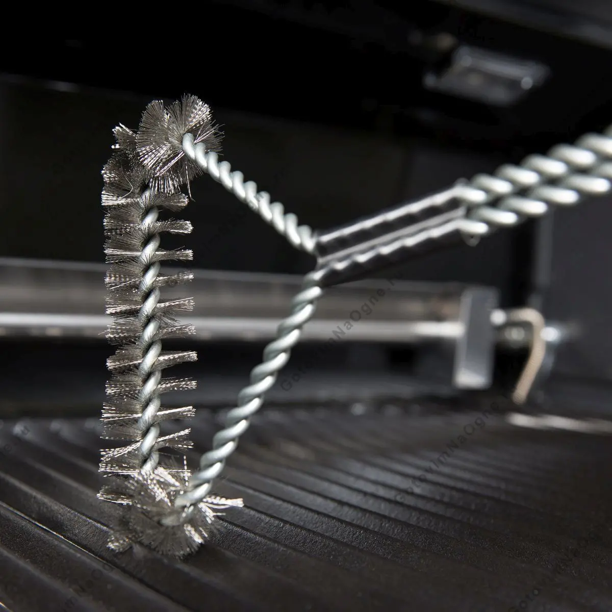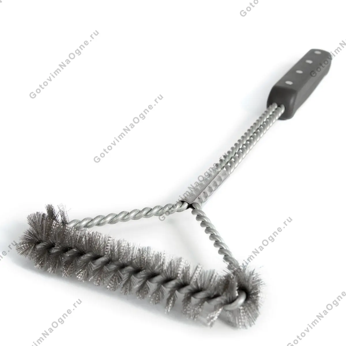 Т-образная щетка для чистки решеток гриля. Щетка используется для очистки как самой решетки, так и труднодоступных мест по ее краям. Покрытие из фарфоровой эмали не портится щетинками из высококачественной стали. Щетка с мягкой удобной ручкой. Широкая головка из нержавеющей стали с изогнутыми щетинками способна проникнуть даже в самые труднодоступные углы Вашего гриля.