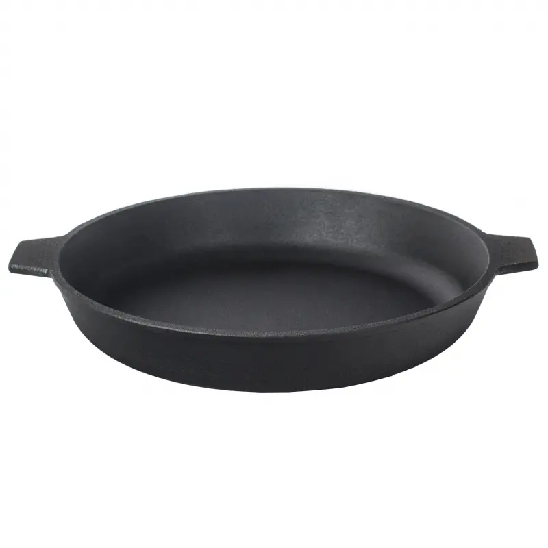 Сковороды чугунные изготавливают разных размеров, в комплекте с крышкой или без нее. Обычно они оборудованы двумя небольшими ручками или съемными держаками, которые не менее удобны в эксплуатации. Благодаря особенностям материала и толстым дну и стенкам, сковорода не деформируется от сильного и длительного нагрева.