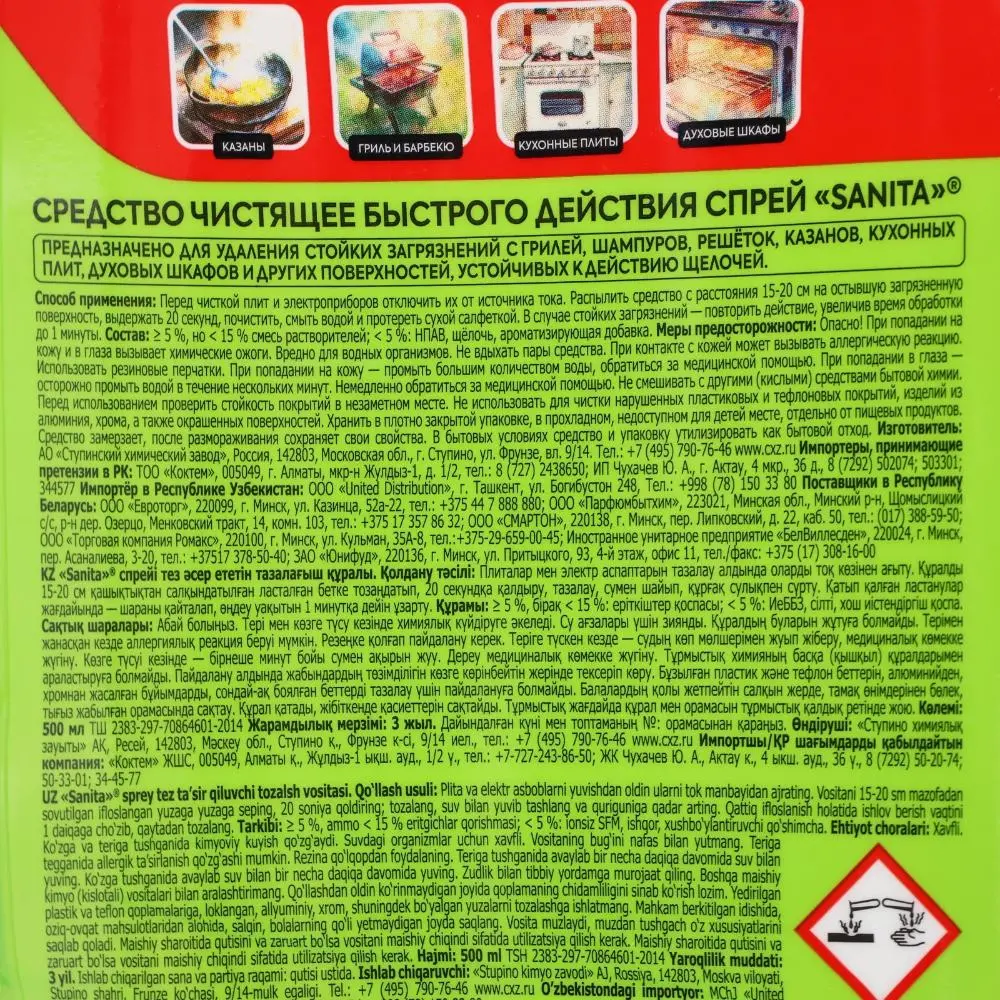 Эффективное средство для удаления сложных загрязнений, жира и копоти с казанов, грилей, шампуров, решеток, кухонных плит, микроволновых печей, духовых шкафов и других поверхностей.