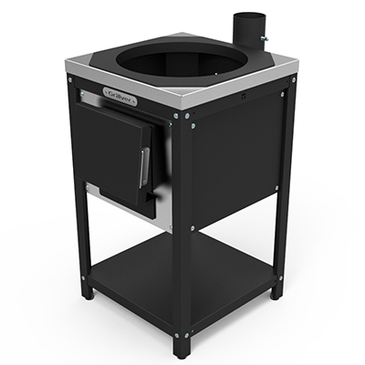Топка встроена в стол (столешница из нержавеющей стали) - для сохранения общего стилевого решения линейки.