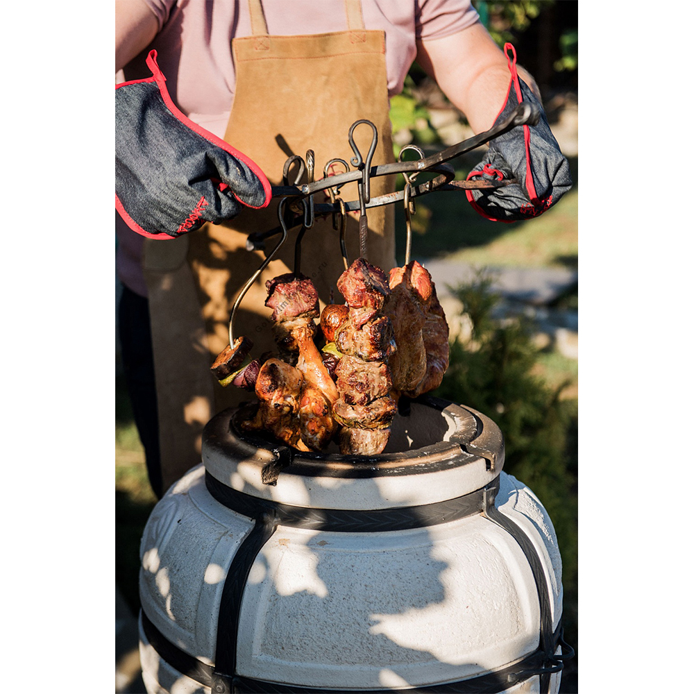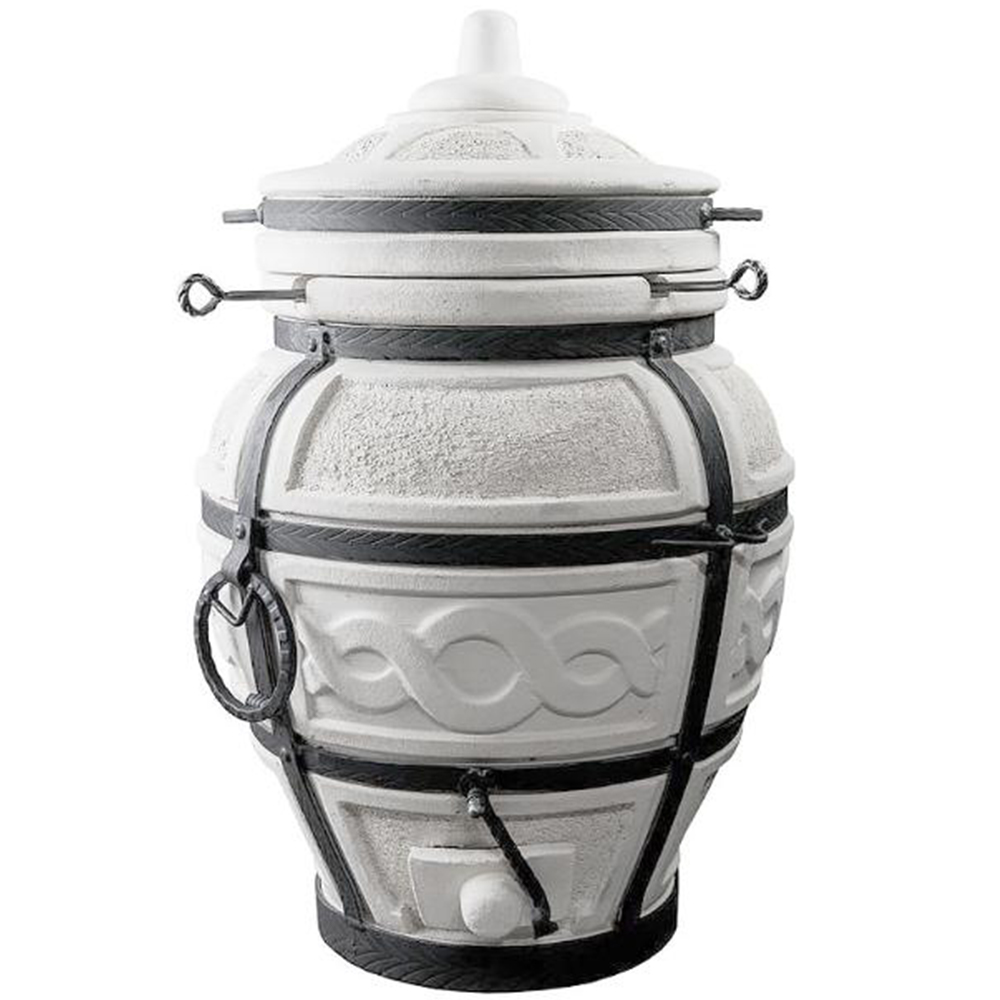 Крестовина для крепления шампуров также из нержавеющей стали. Усовершенствован механизм крепления нижнего поддувала. Незначительно изменен рисунок на корпусе тандыра и форма крышки.