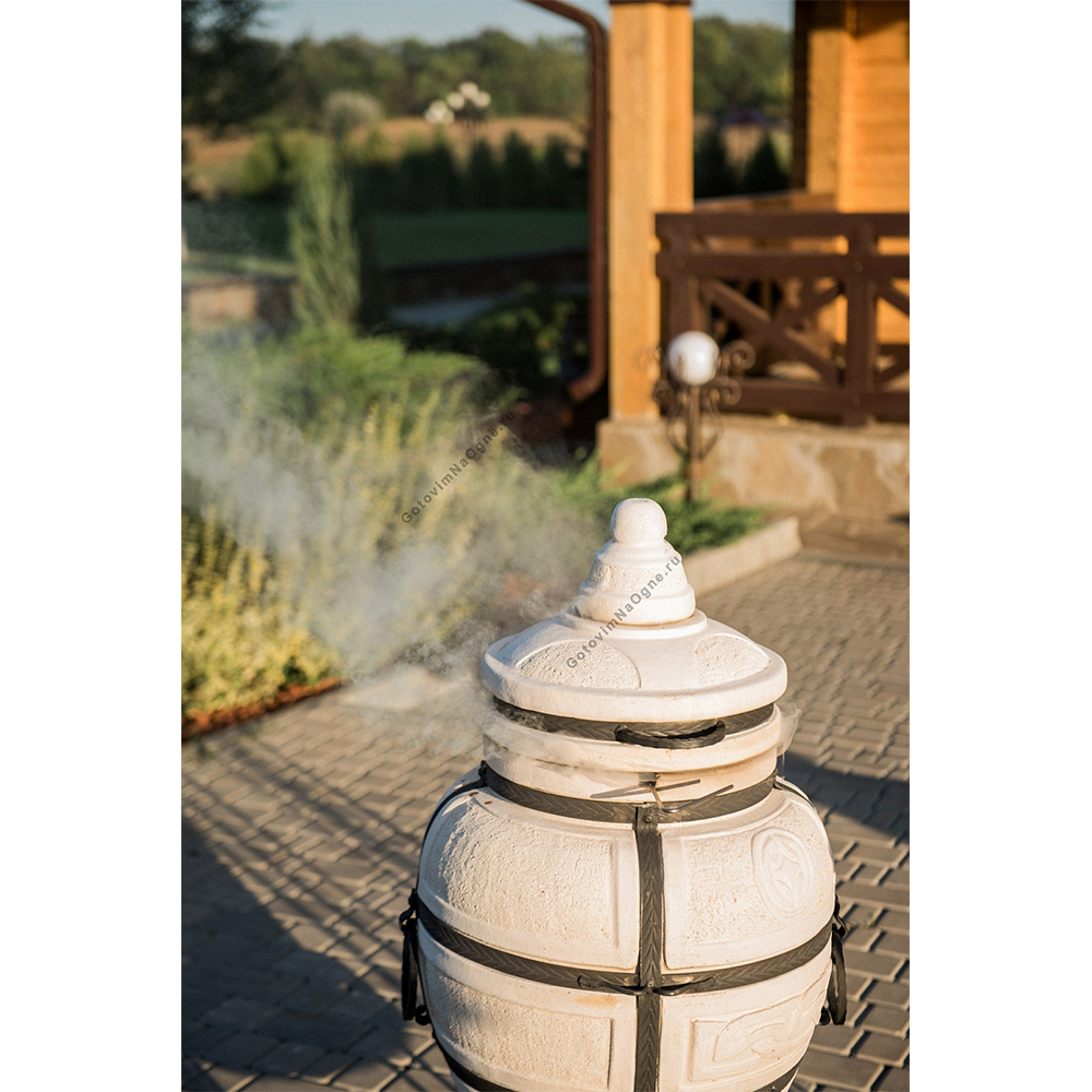 Смотровое окно позволяет комфортно наблюдать за приготовлением пищи в тандыре без поднятия тяжелой крышки. Также при использовании казана на тандыре, через это окно можно подкидывать дрова. Удобная опция!