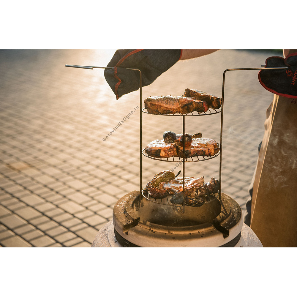 Дополнительно к тандыру можно купить чугунную сковородку-ёлочку, подставку под тандыр, термометр, крюк, 3-х ярусную этажерку, мясную этажерку и зольный ящик и все это со скидкой 10%!