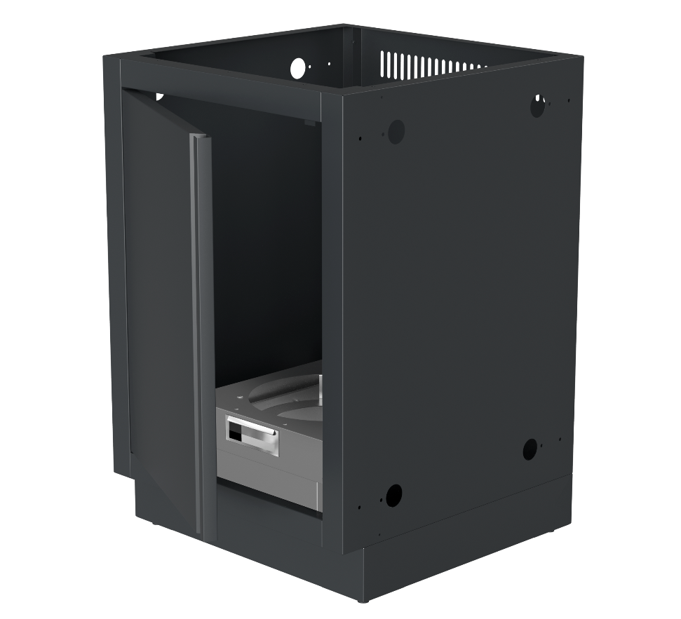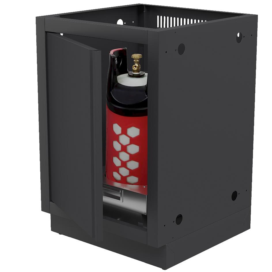 Тумба для хранения газового баллона имеет выдвижную площадку для удобства в эксплуатации.