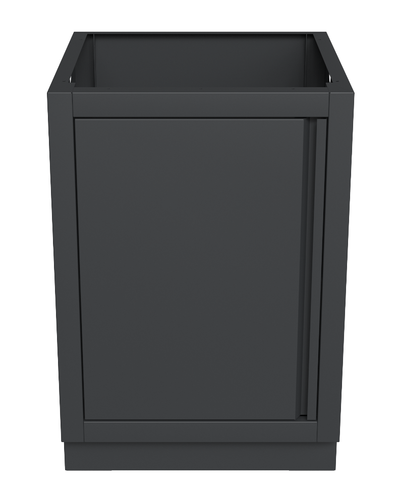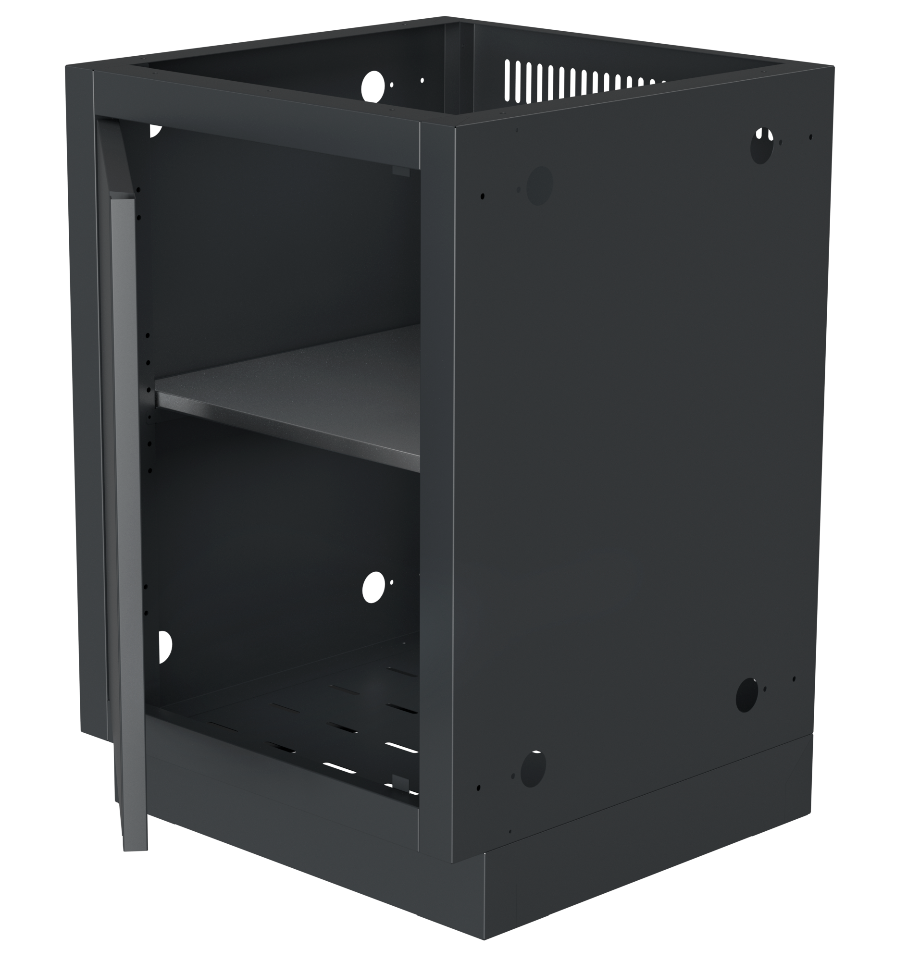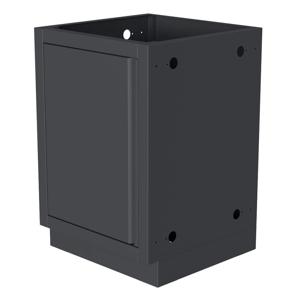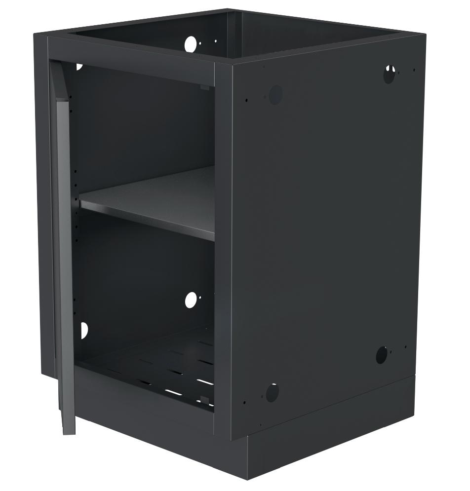 Тумба с дверцей и полкой универсальная. Можно изменить сторону открывания дверцы. Съемная полка регулируется по высоте. В случае установки мойки полка не используется! Изготовлена из высококачественной нержавеющей стали ANSI 304. Размеры (ШхГхВ): 61х61х90 см.