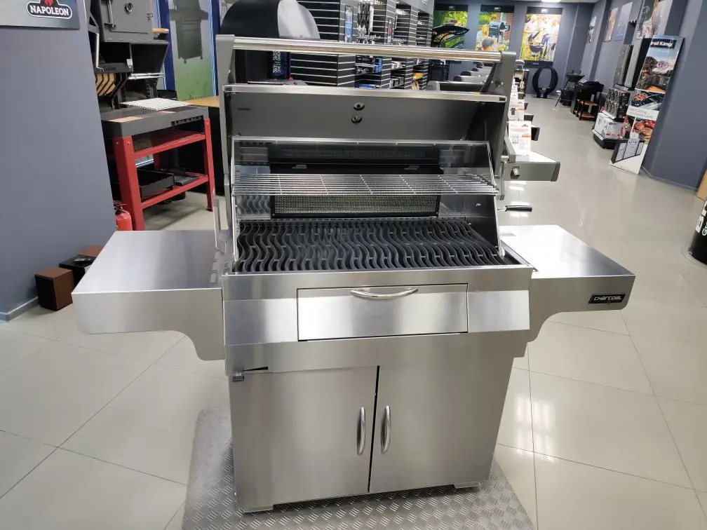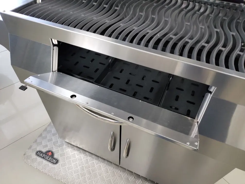 - Фронтальная дверца для быстрого доступа к поддону с углем.