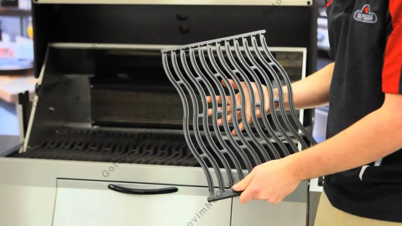 Чем меньше шаг решетки, тем лучше. Между прутьями решетки часто проваливается пища, что загрязняет топку и может привести к воспламенению.