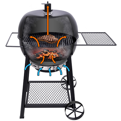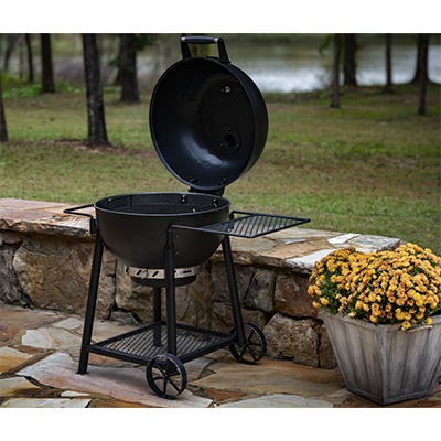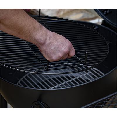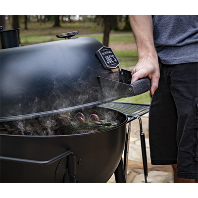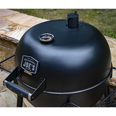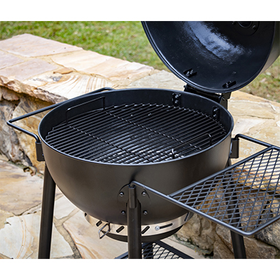 Oklajoma Joe's Blackjack - классический круглый гриль с крышкой. Эмалированная решетка с эффективным диаметром 55 см. Съемный золосборник и удобный механизм регулировки доступа воздуха к углю. Отверстия равномерно расположены по периметру, так что и уголь горит равномерно. Сетчатые боковой столик и ручку при необходимости можно вынимать из пазов или переставлять их местами. Сетчатая полка у основания подойдет для хранения стартера и рабочих инструментов.