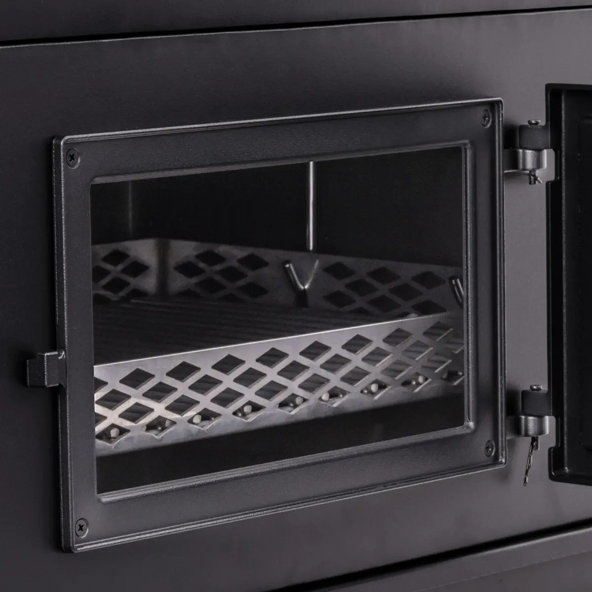 - Решетка для угля из жаропрочной стали. Для плавной регулировки расстояния между углем и рабочей решеткой, решетку для угля можно переставлять по высоте.