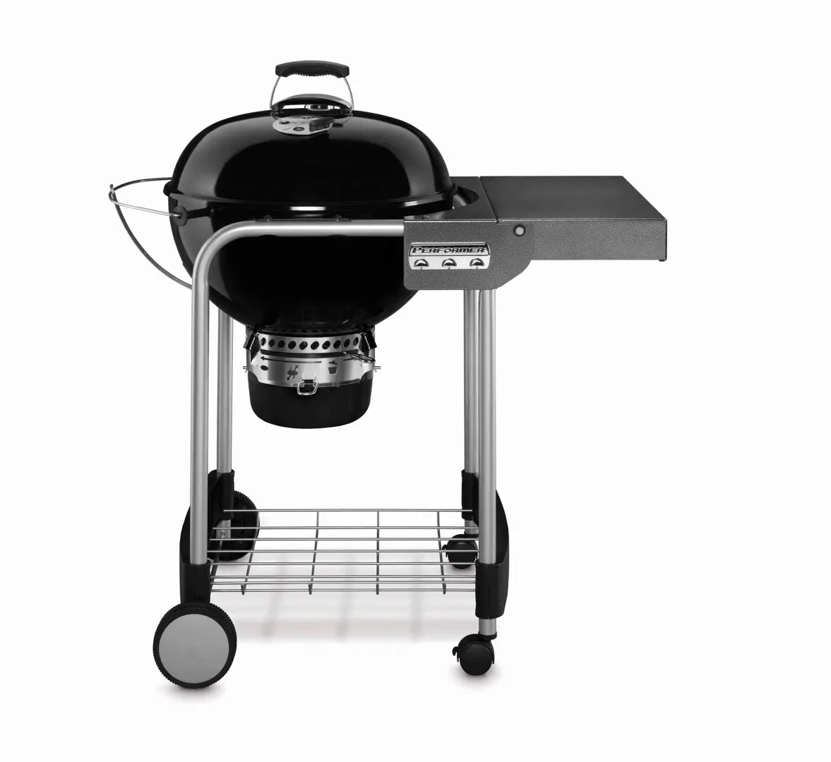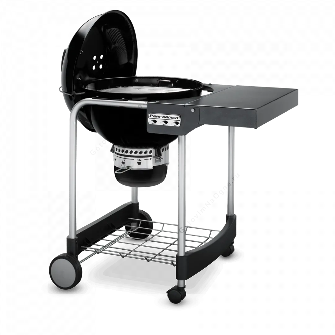 Performer® Original GBS - угольный гриль компании Weber® с тщательно подобранным оснащением для нужд садовой кухни. Обладая всеми преимуществами системы Master-Touch® GBS, он предлагает большую площадь поверхности для приготовления, а также рабочий столик на удобной высоте. Благодаря тому, что столик гриля складывается, гриль является компактным решением среди линейки грилей со столами.