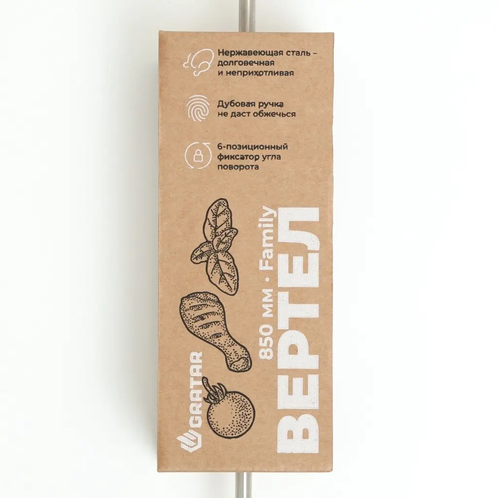 Вертел GRATAR BT-850 подходит для мангалов Family (FOB и FOBn) с крышками-барбекю и ветрозащитой.