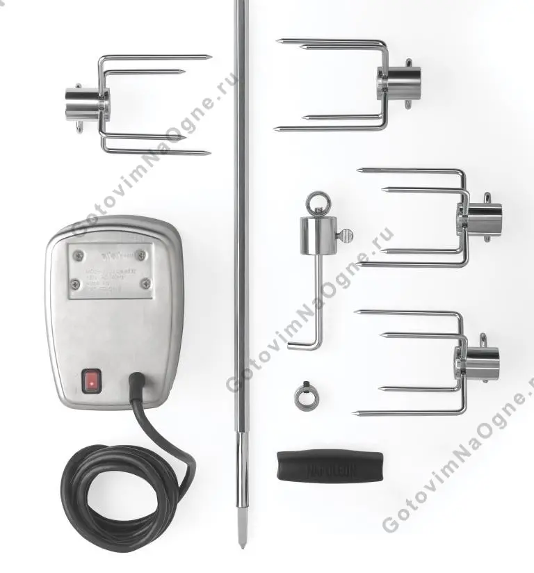 Ни один способ не готовит большие куски мяса или птицы так вкусно и сочно, как на вертеле! Также с помощью вертела и опциональной насадки для шампуров можно готовить шашлыки на шампурах. А ещё можно установить "корзину" которая идеально подходит для овощей, куриных крылышек, картофеля фри и т.д. Вертел электрический 220 В для газовых грилей NAPOLEON LE-3 / P-500.