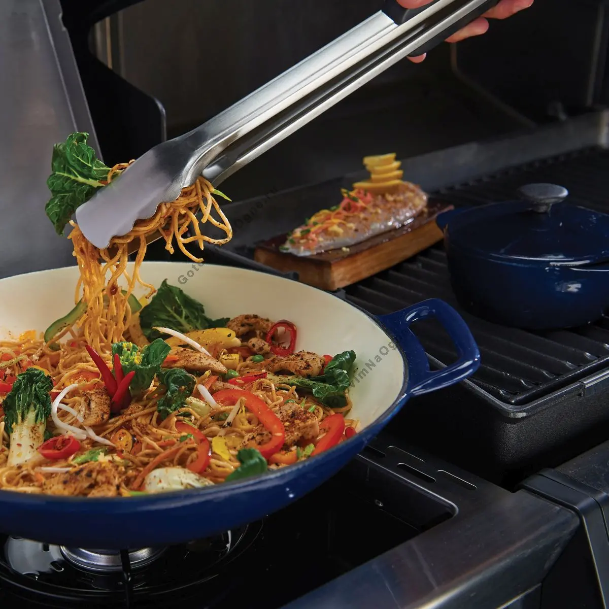 Прочное фарфоровое покрытие на чугунном основании делает этот вок для гриля одним из самых популярных аксессуаров. Его очень легко чистить; кроме того, он обеспечивает постоянную прожарку благодаря способности чугуна удерживать и равномерно распределять тепло. Диаметр – 36 см, глубина – 9.5 см.