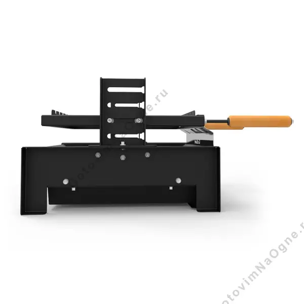 Съемная рамка с пазами для фиксации шампуров,конструкция Step-fix, позволяющая регулировать расстояние от углей до решетки, зольный ящик