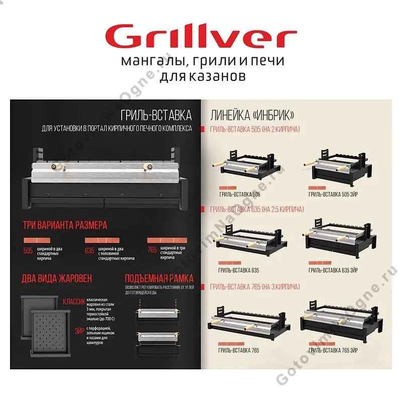 Вставка для гриль-барбекю Inbrick 635 Air перфорированное дно и с зольным ящиком для сбора золы, для установки в проем кирпичного комплекса. Длина жаровни 635мм. (2,5 стандартных кирпича). Есть возможность регулировки расстояния от углей до готовящейся еды.