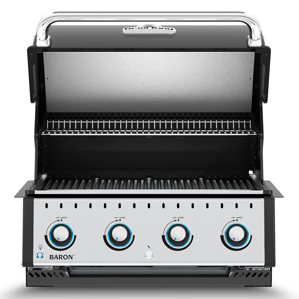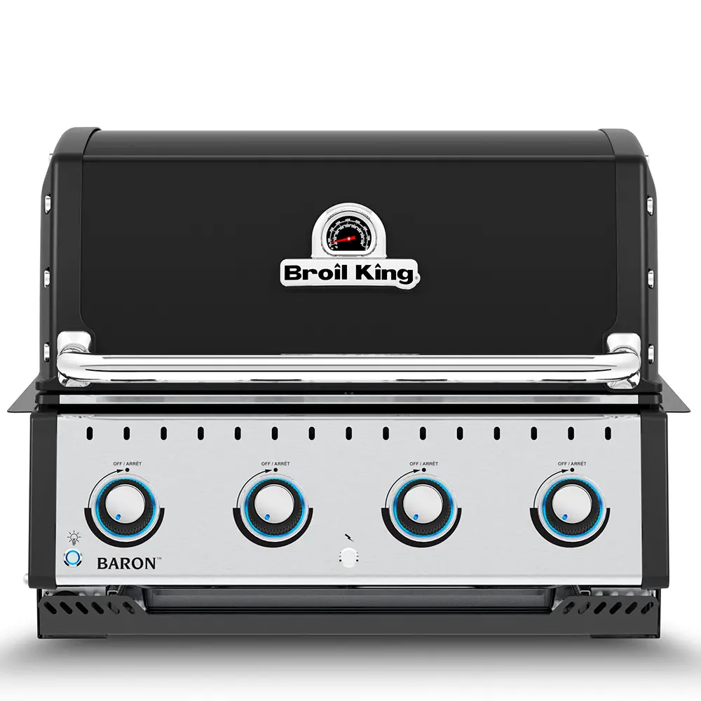 Встраиваемый газовый гриль BROIL KING BARON 420BI, 4 основные горелки Dual-Tube мощностью-11,4 кВт, 4 чугунные двусторонние решетки и вспомогательная решетка из нерж. стали, подсветка ручек.