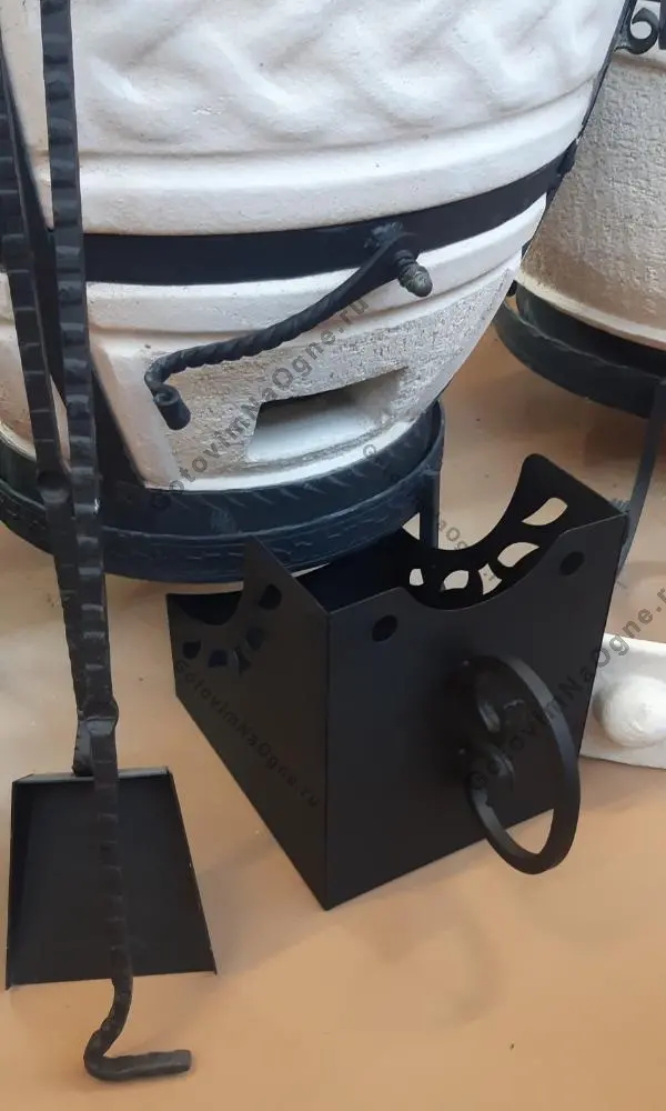 Перед каждым приготовлением в тандыре, необходимо извлекать золу и остатки угля, для их сбора отлично подойдет зольный ящик. Необходимо установить зольный ящик под подставку тандыра, как это показано на фотографиях.