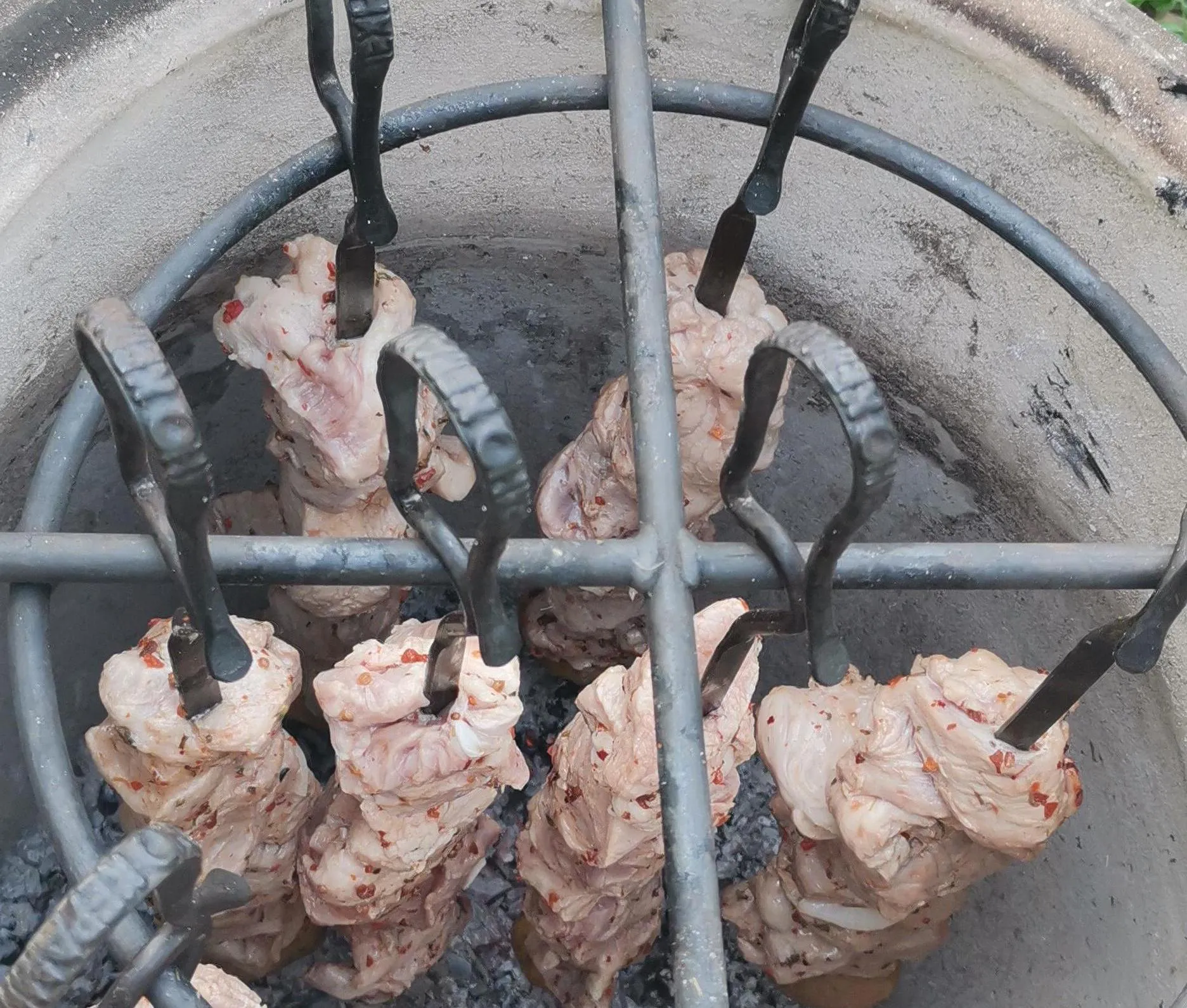 - На чём лучше готовить в тандыре? Вариантов много: шампур, этажерка, крюк, сковородка-ёлочка, рыбная решетка, двойной шампур.