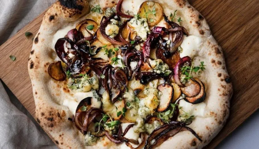 Пицца с картофелем, голубым сыром и бальзамическим красным луком