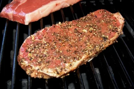 Положите отбивную на раскаленную решетку гриля жировой частью, чтобы жир начал таять.